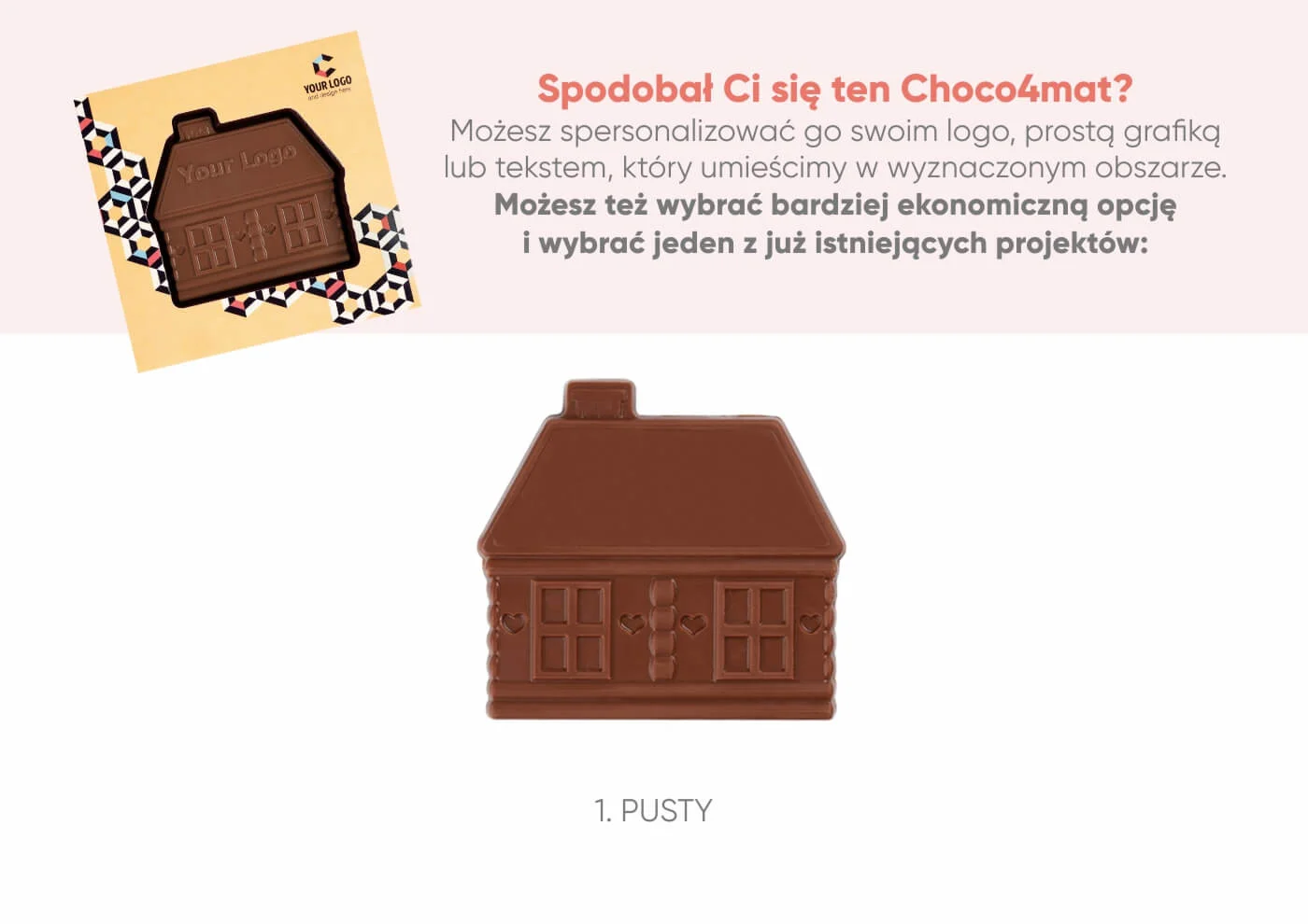 Choco4Mat to wiele opcji personalizacji – możesz nie tylko wybrać kształt czekolady reklamowej, ale także jej kuwerturę czyli smak (oferujemy aż 10 do wyboru), wyeksponować logo bezpośrednio na produkcie oraz spersonalizować grafikę opakowania. Dzięki temu stworzysz niepowtarzalny słodki gadżet reklamowy jakości premium, dopasowany do marki, branży oraz założeń kampanii promocyjnej.