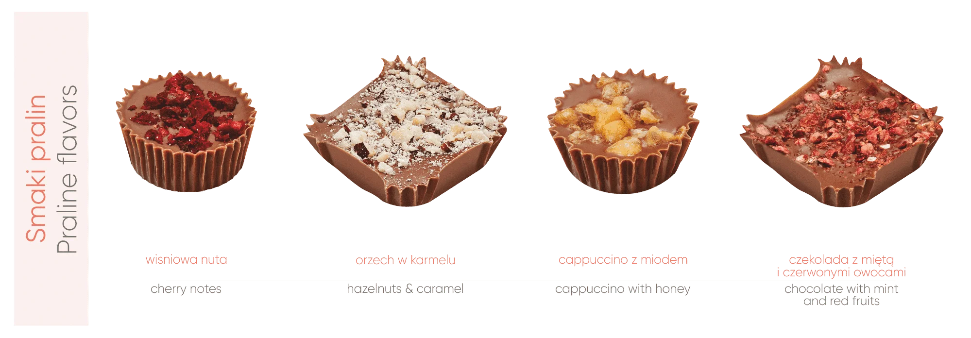 | Smak | wiśniowa nuta, cappucino z miodem, orzech w karmelu, czekolada z miętą i maliną |