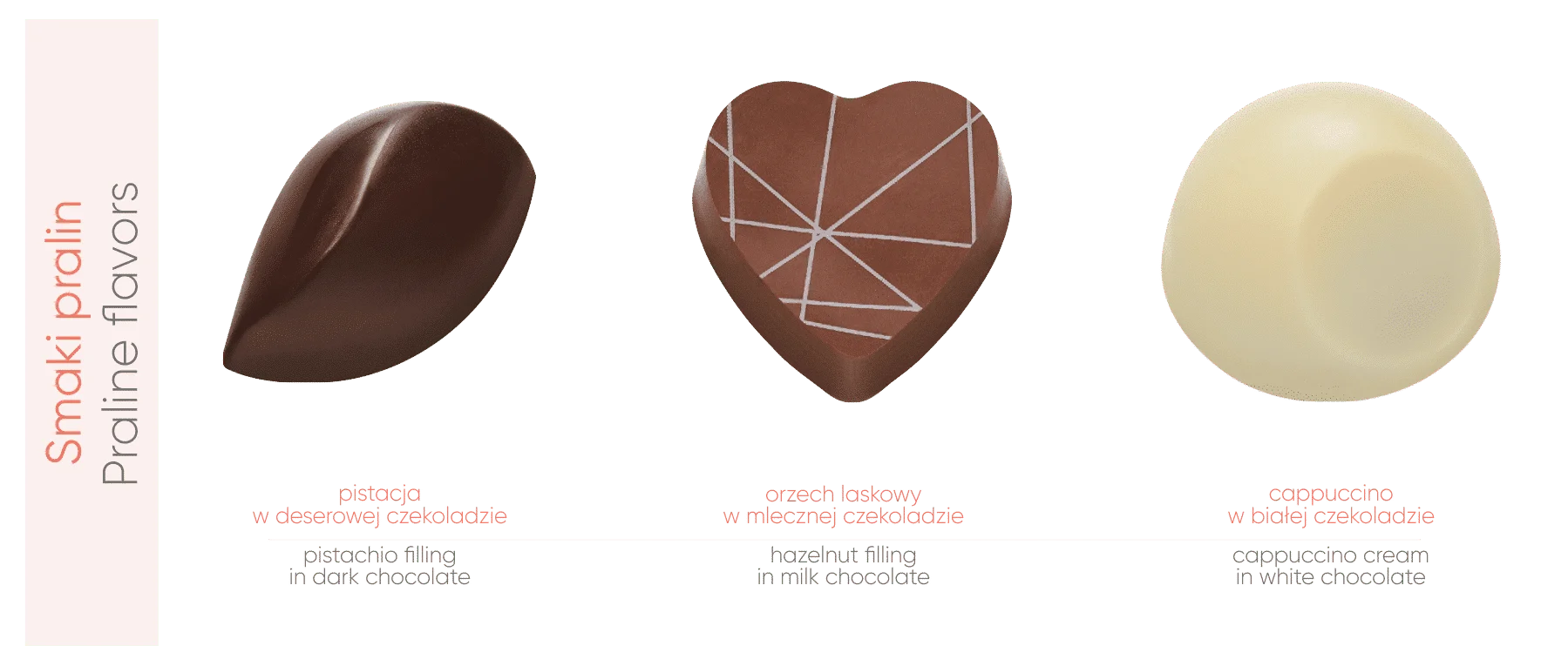 Warto zwrócić uwagę na czysty skład słodyczy. Każda pralina, stworzona na bazie czekolady z certyfikatem Cocoa Horizons, zapewnia nie tylko wyjątkowy smak, ale także gwarantuje, że nadzienia są w 100% naturalne i wolne od oleju palmowego.